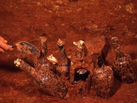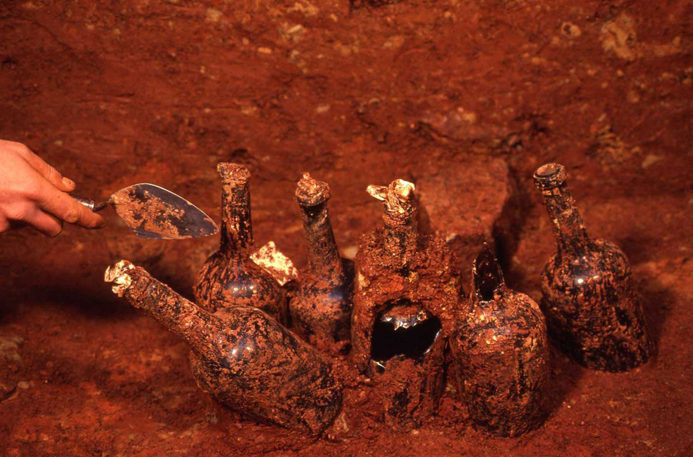 Partially-excavated wine bottles at the bottom of the Dry Well
