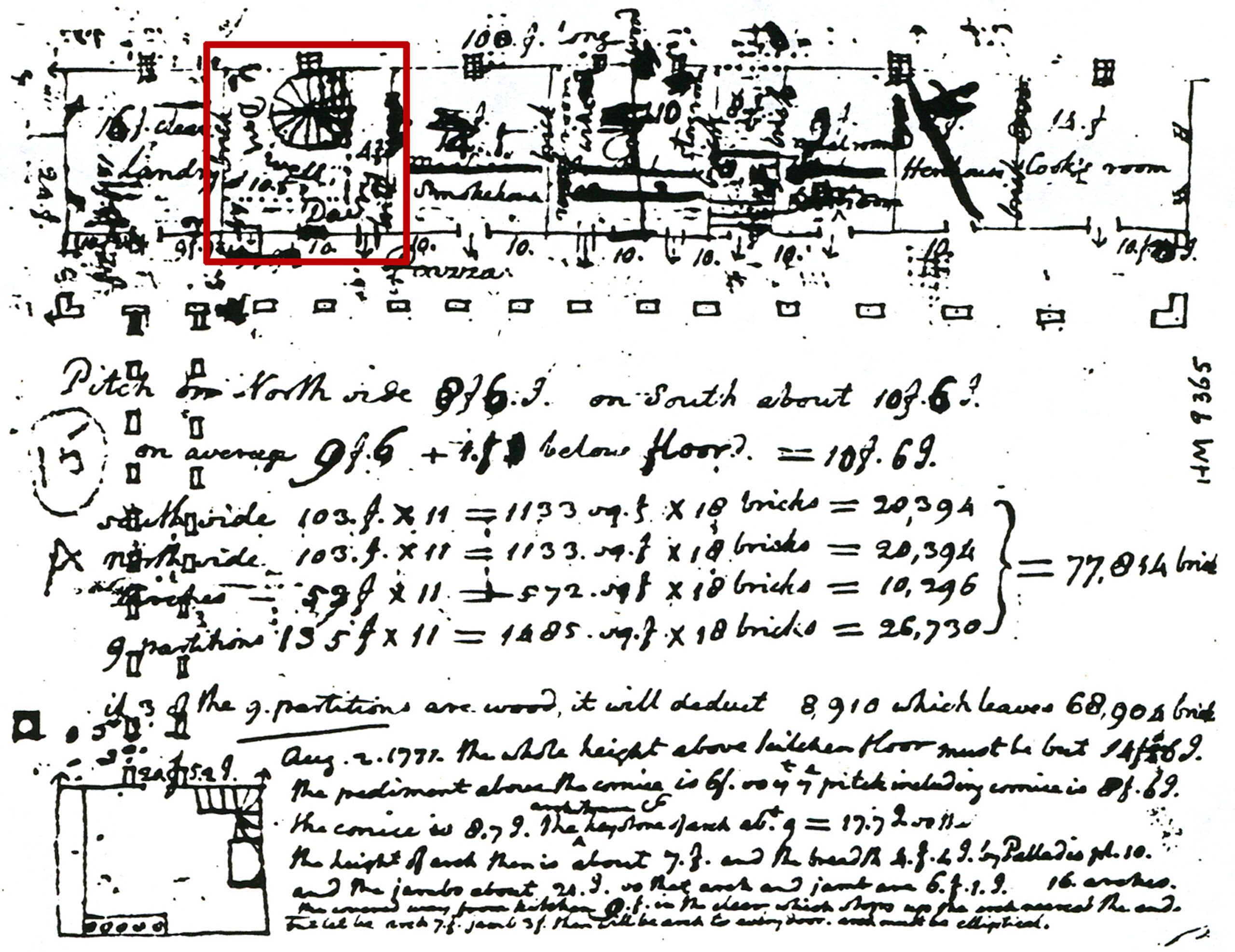 2Jefferson, Thomas. Studies for plans for dependencies with brick estimates. N59. 1771. CSmH9365. The Huntington Library, San Marino, CA.